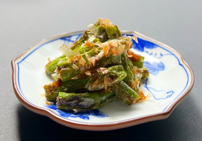 いんげんのピリ辛味噌炒め (作りやすい分量) いんげん 約100g 15本(3等分に切る) ごま油 適量 肥前佐嘉角屋【米味噌】 大さじ1 砂糖 小さじ1 豆板醤 お好み量 かつお節 1パック ①熱したフライパンにごま油を入れ、いんげんを炒める ②①が炒まったら、火を弱め、かつお節以外を入れ、よく炒め絡ませる ③最後にかつお節を絡める