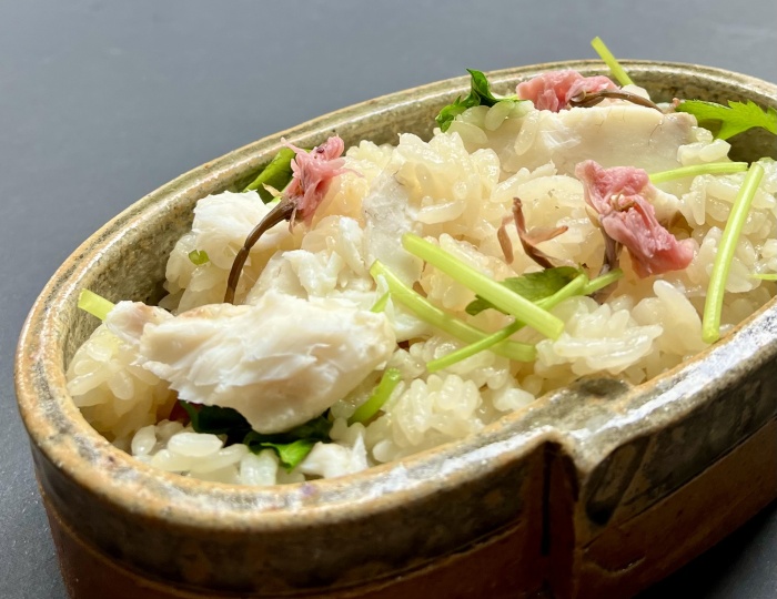 鯛と桜の炊き込みご飯〜菓人結人さんの桜の塩漬け〜 米 2合(洗米する) 肥前佐嘉角屋【だし醤油】大さじ2 鯛刺身用 100g (鯛に【野菜だれ】をしっかり絡める) 肥前佐嘉角屋【野菜だれ】大さじ1 桜の塩漬け 約15g(軽く水洗い) 三つ葉 適量(1cmに切る) ①炊飯釜にお米と【だし醤油】を入れ2合のメモリまで水を入れる ②【野菜だれ】に絡めた鯛と水洗いした桜を香り付けに2輪ほど入れて通常炊飯する ③炊き上がった鯛ご飯をざっくり混ぜて残りの桜と三つ葉を合わせて器に盛り付ける